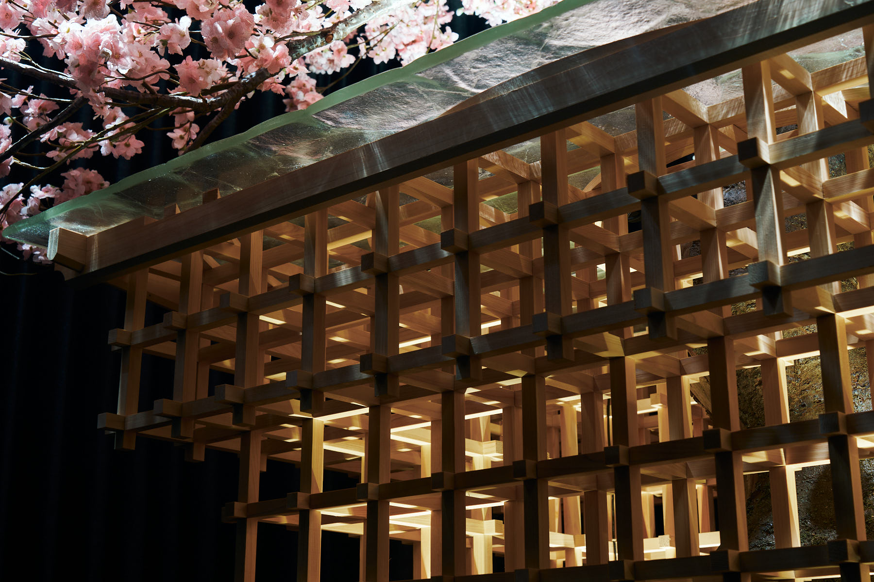 日本の木工技術は世界一といっても過言ではありません。法隆寺の西院伽藍は世界最古の木造構造物郡とされており、美しいものを長く存続させることに対する技術への探求に他ならない。その美しい心のあり方をこの新しい桜のディスプレイに込めました。